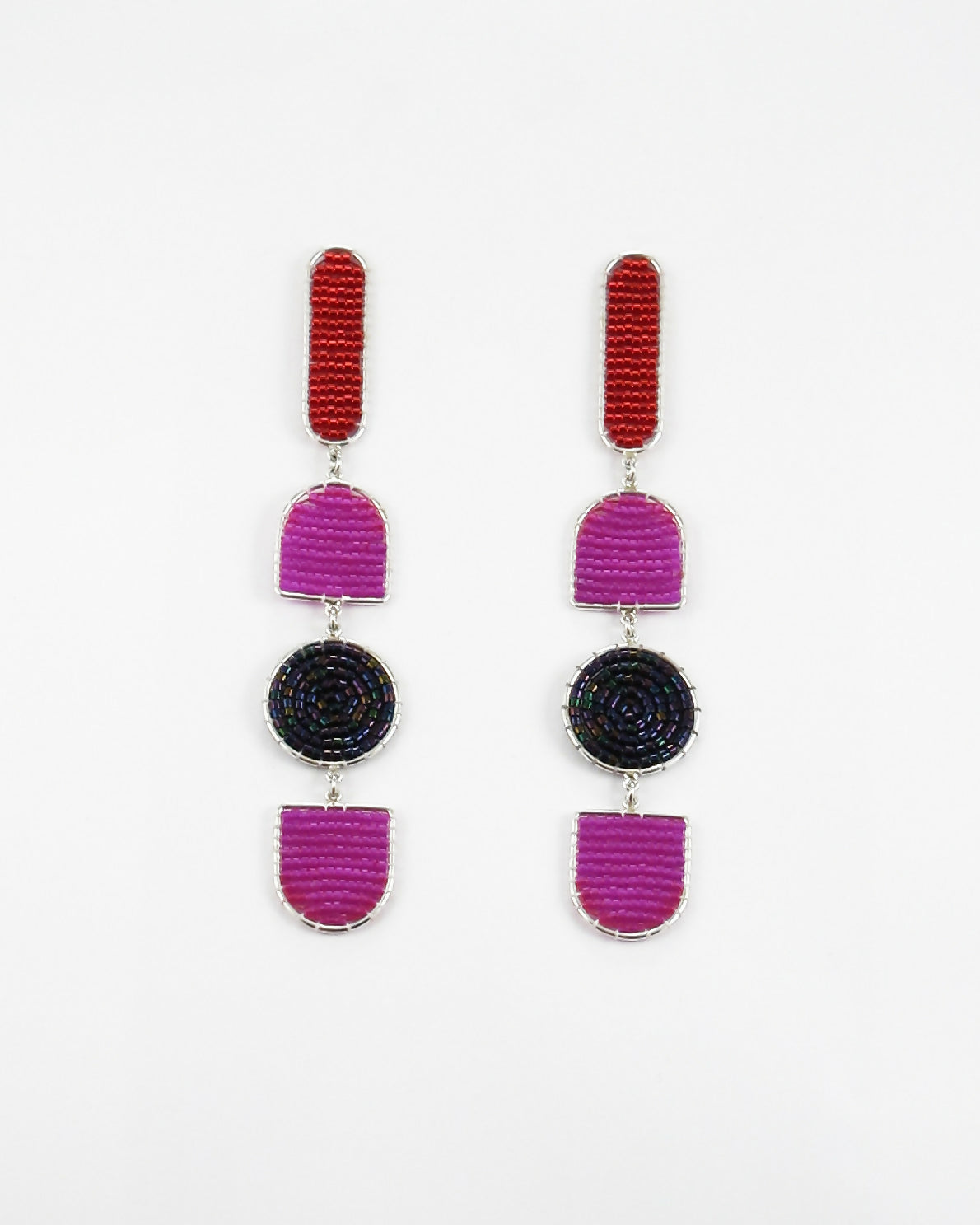 Aros hechos a mano utilizando alambre de plata 950 y tejido de mostacillas Miyuki Delicas.