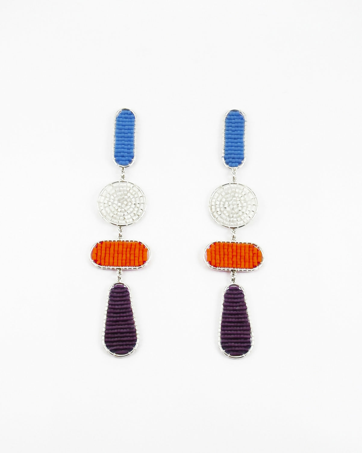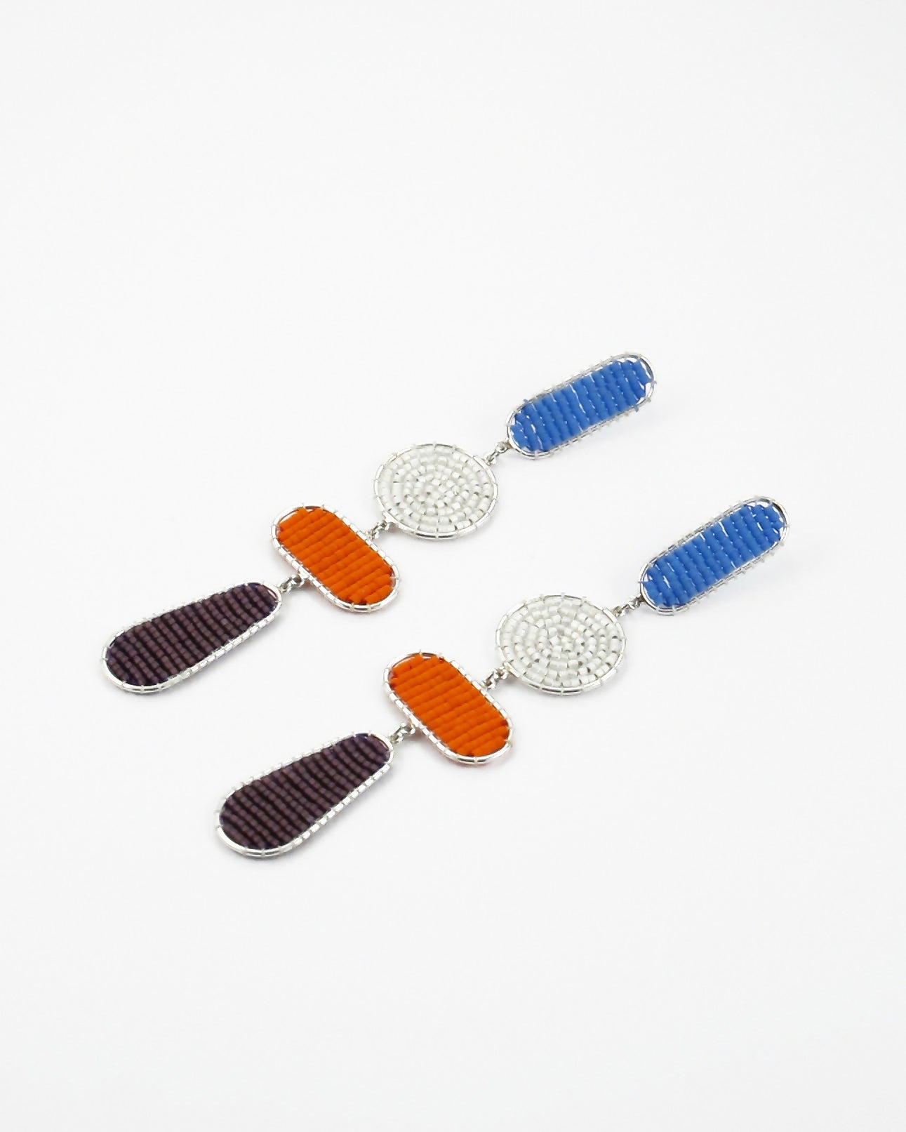 Aros hechos a mano utilizando alambre de plata 950 y tejido de mostacillas Miyuki Delicas.