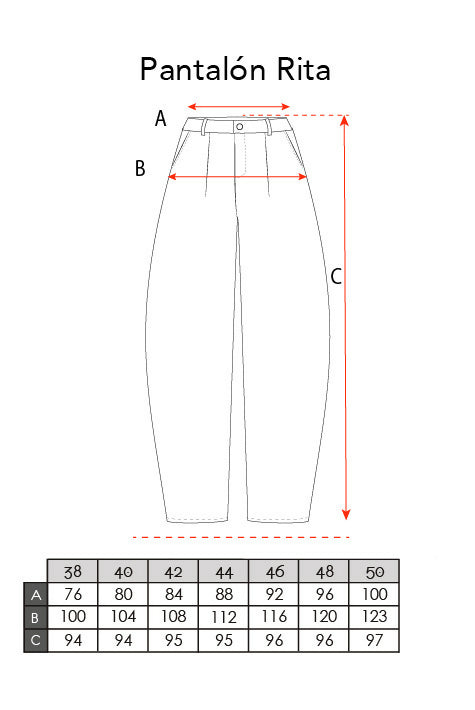 Tabla de medidas pantalón Rita | Claudia Loyola Atelier