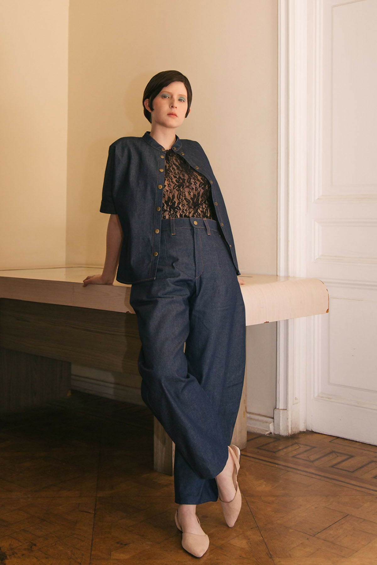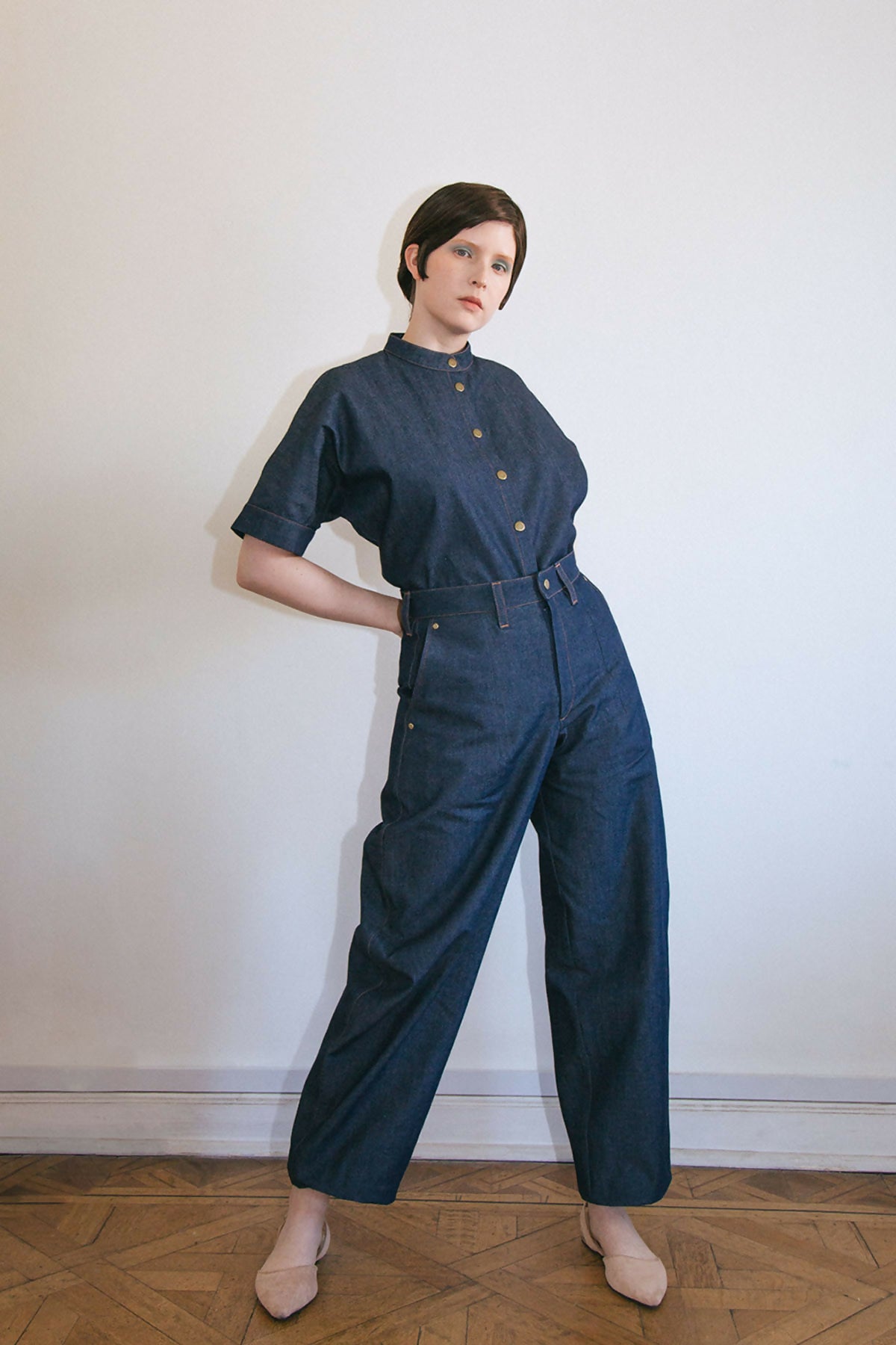- Tela denim delgado 100% algodón.