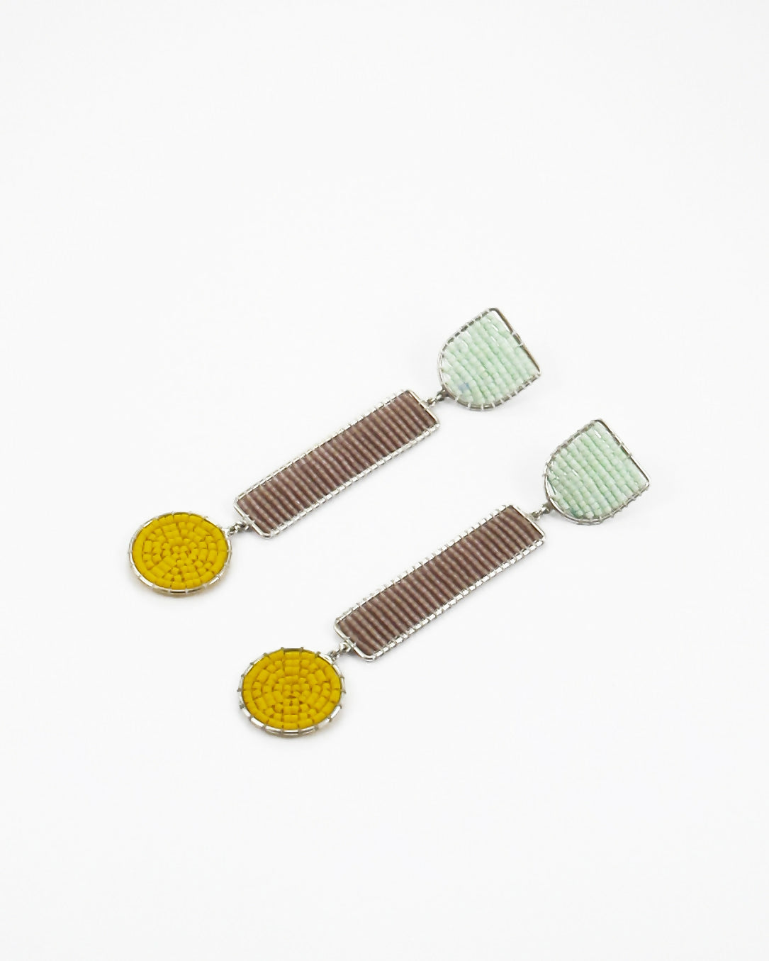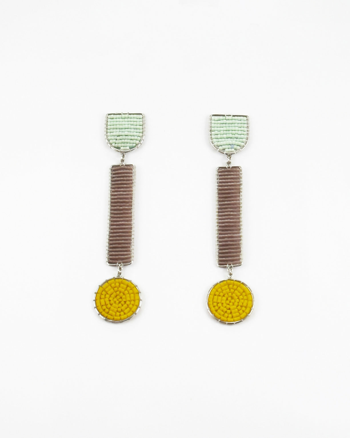 Aros hechos a mano utilizando alambre de plata 950 y tejido de mostacillas Miyuki Delicas.
