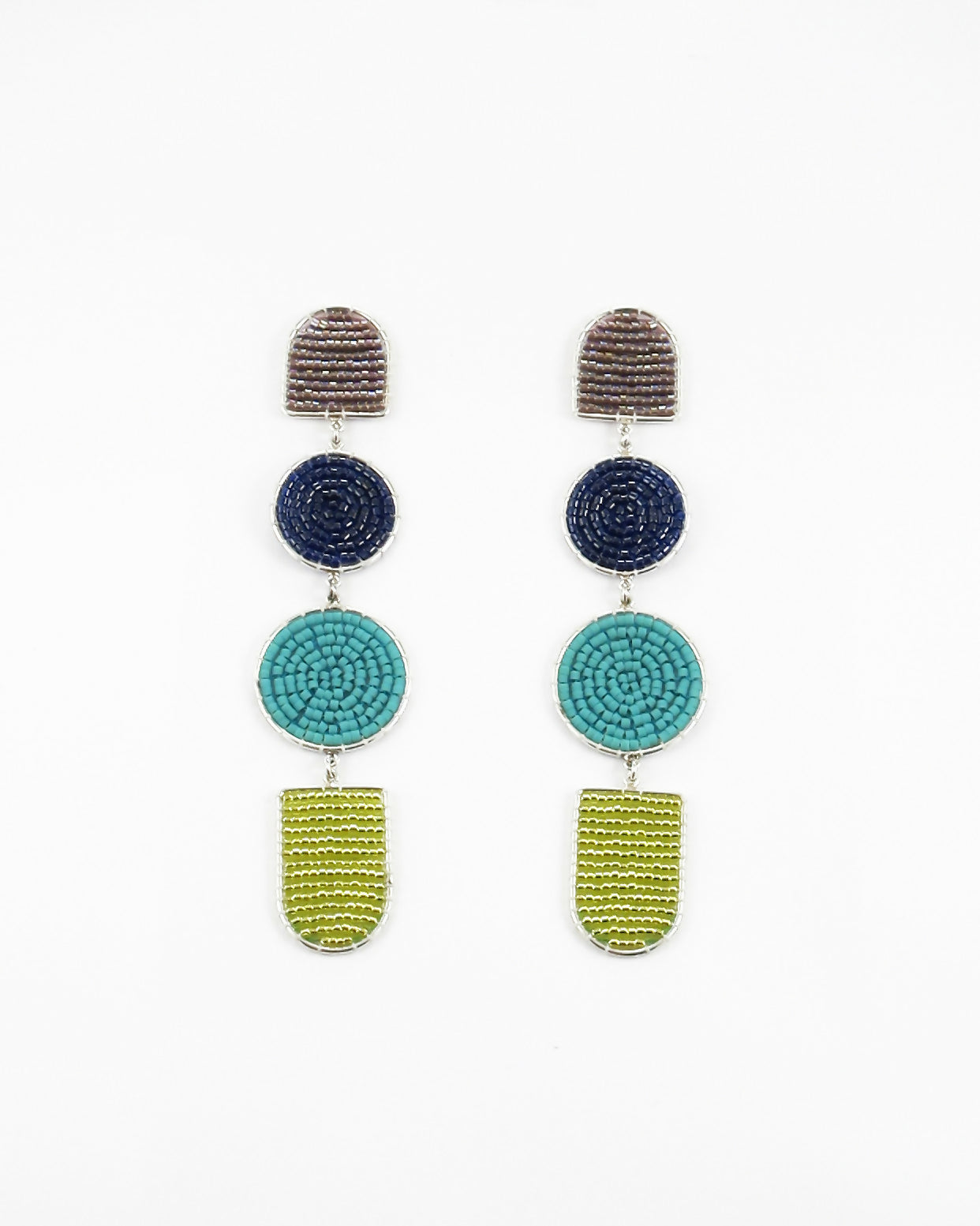 Aros hechos a mano utilizando alambre de plata 950 y tejido de mostacillas Miyuki Delicas.