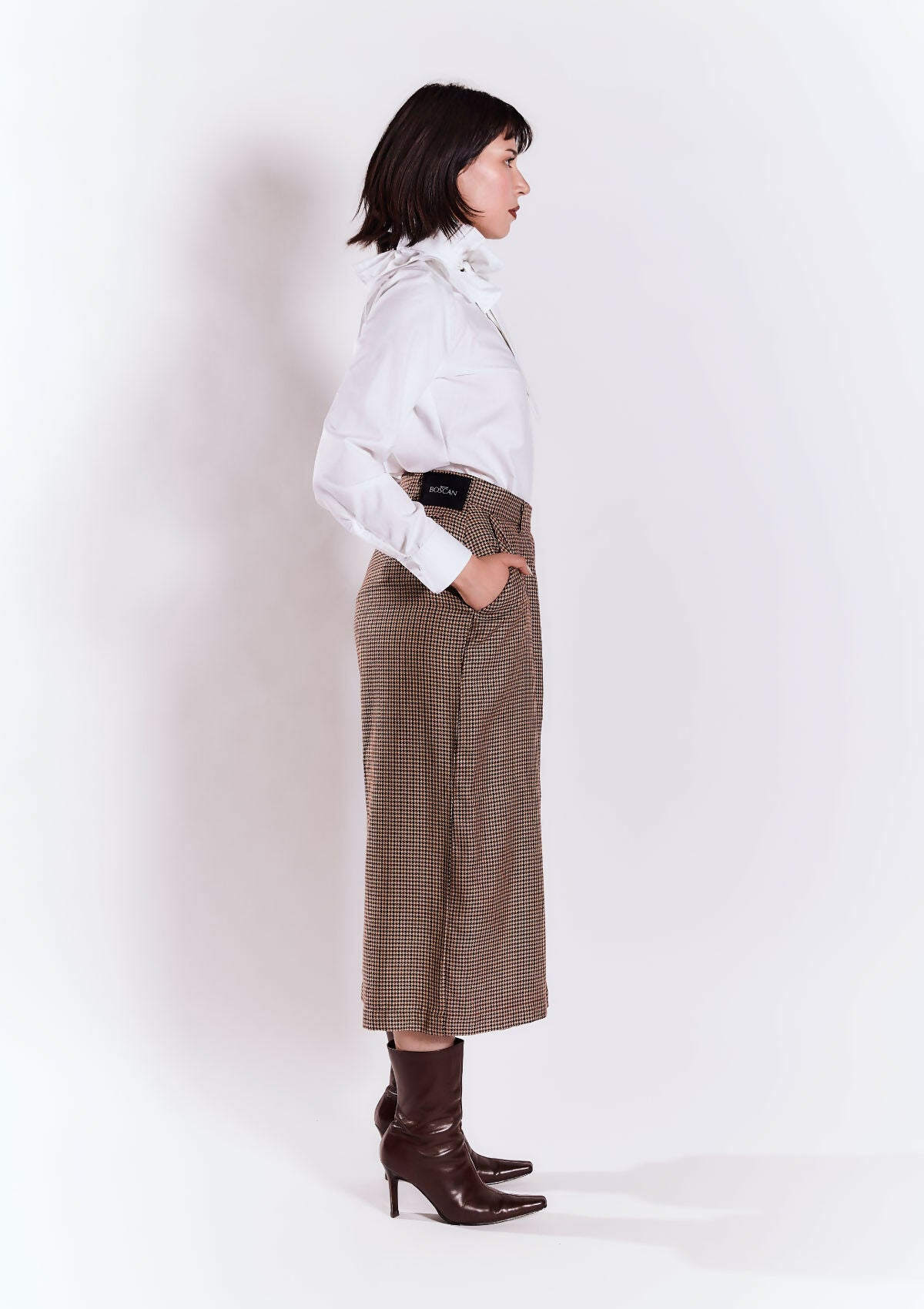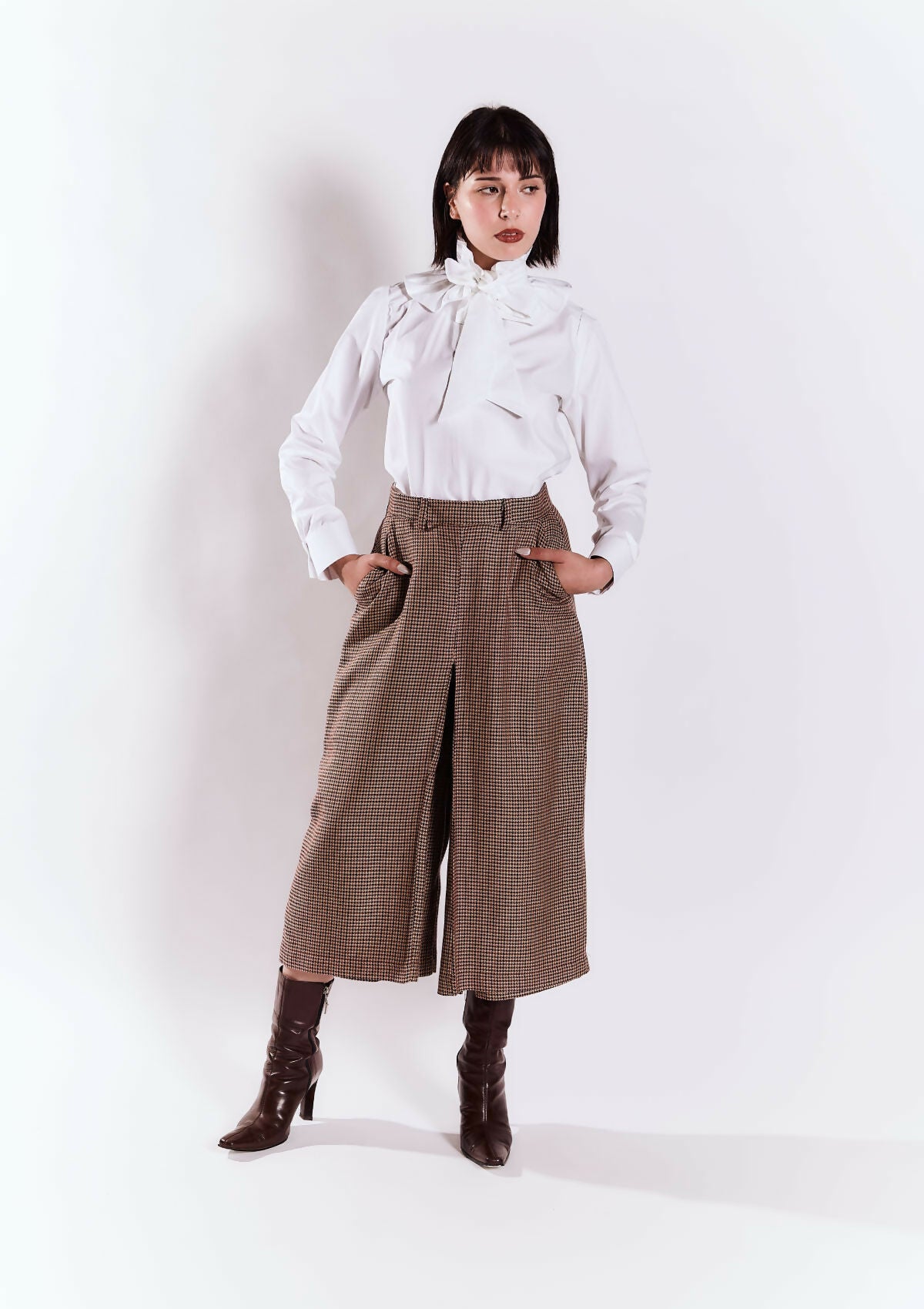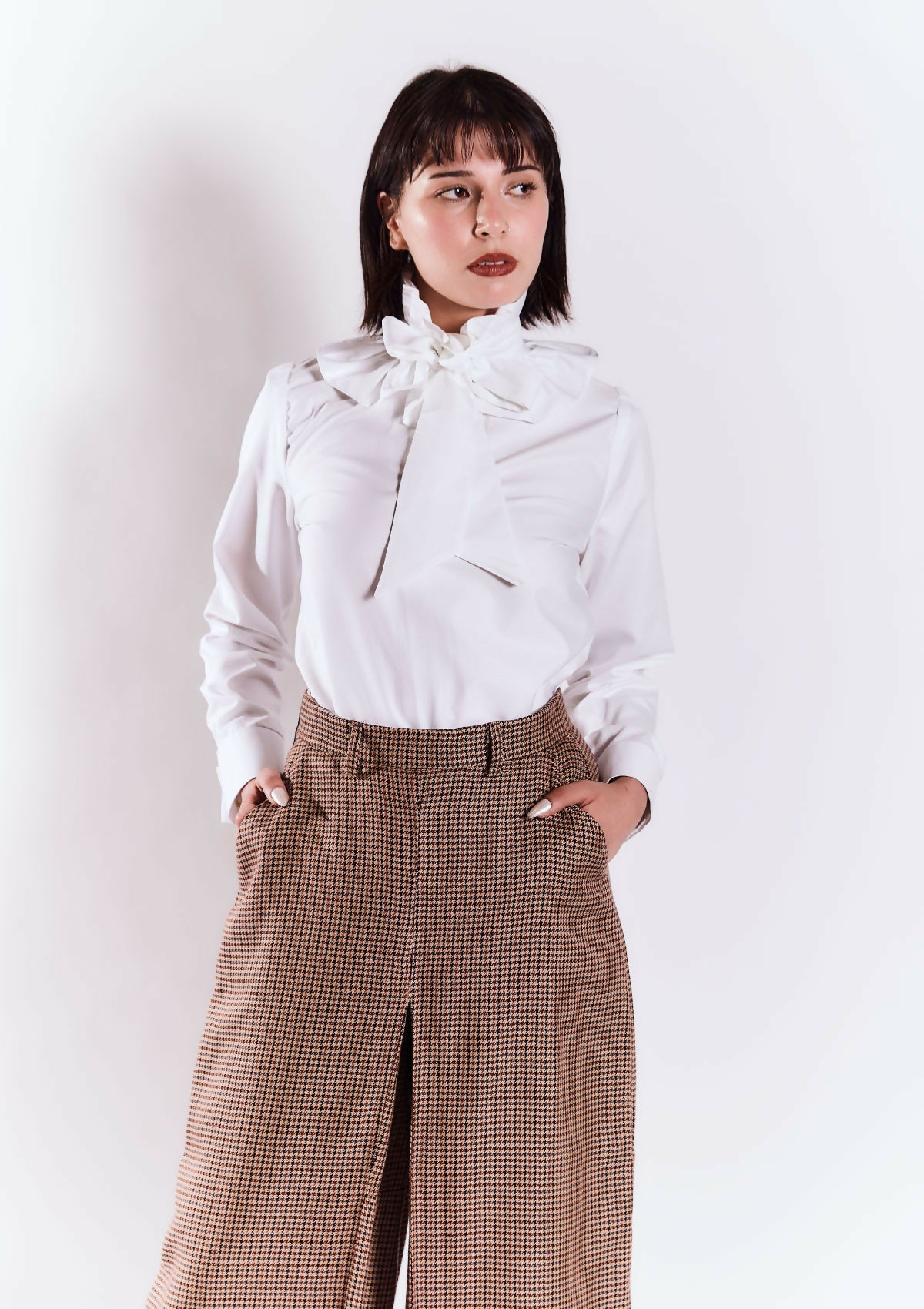 Esta destaca por sus elegantes puños y su cuello con vuelos que añaden un toque de distinción y modernidad.