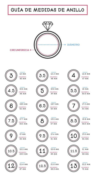 Se requiere que nos hagas saber la medida de dedo para poder acomodarlo y dejarlo en un calce perfecto a su número.